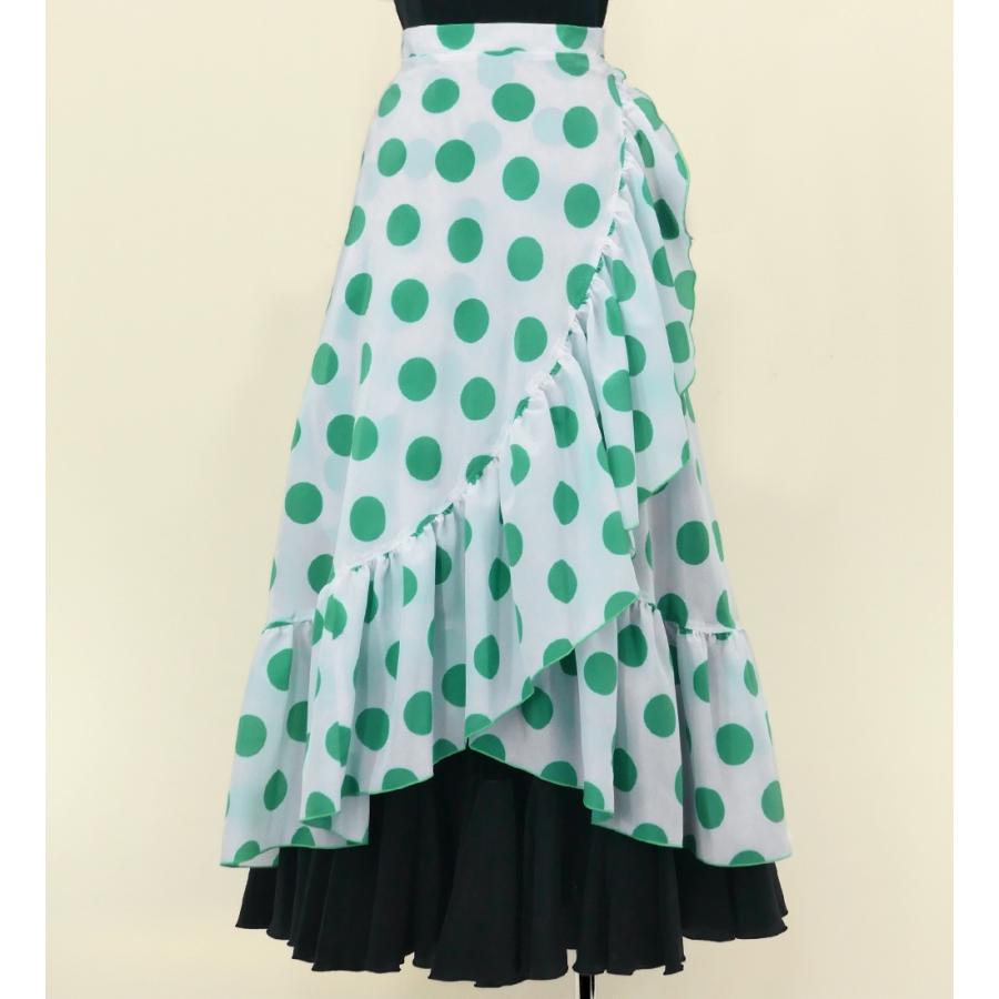 - ダンス・バレエ > フラメンコ > フラメンコ衣装 オーダーメイド 中古 S-Mサイズ ターコイズブルー フラメンコ 巻きスカート 水玉 ホワイト×ターコイズブルー Fサイズ FMS